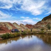 自驾游营地距离兰州市区40km,是比较少见的有水塘的丹霞,结冰后被天空映蓝的鱼塘和鲜艳的七彩丹霞形成了鲜明的青橙色调,建议摄影爱好者前往。