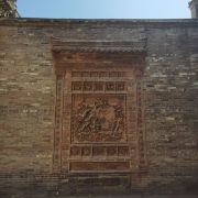 运城李家大院主题建筑显得有些特别,相比较那个时代的建筑似乎有点西洋化,经了解知道因西院院主李道行(字子用)留学英国,娶英国女子麦孺为妻,从而使整个建筑呈现出明显的西洋风格,。门楼外形的整体轮廓高、直、尖,线条轻快,造型挺秀,是十六世纪欧洲“哥特式”的建筑。而它表面的砖雕图案却是典型晋南民间艺术,呈现出中西文化交流融合的艺术特点。