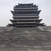 【趣味】鹳雀楼为高台式十字歇山顶楼阁,外观3层4檐,内部为9层使用空间,并设置电梯、楼梯组织垂直交通。整座楼阁分为台基和楼身两部分,总高度达73.9米,是四大名楼中最高的一座,是中国仿造楼中较为精致的。整体看起来还是比较高大上。再有这里离黄河不远,楼群边的广场也比较大。