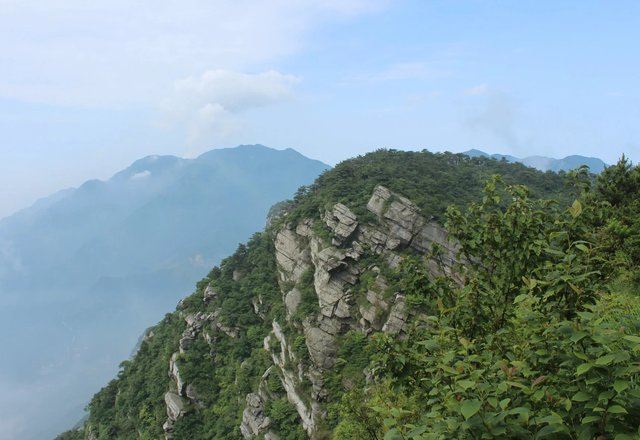五老峰主要由玉柱峰、太乙峰、棋盘峰、东锦屏峰、西锦屏峰五座山峰组成,远望状如五位老人巍然相拱,故名五老峰。山中植被茂盛,还有险峰怪石,流水瀑布随处可见,是一个天然的大氧吧,也是登山健身的好去处。游客进入景区大门后,需要乘坐观光车(车票20元/人,往返)到达登山处,然后沿着登山石阶进入景区游玩,一路上风景如画,但部分路段路况较差。游玩五老峰时,游客也可以选择缆车(往返120元)上山,这里能够节约时间和体力。