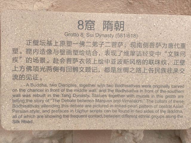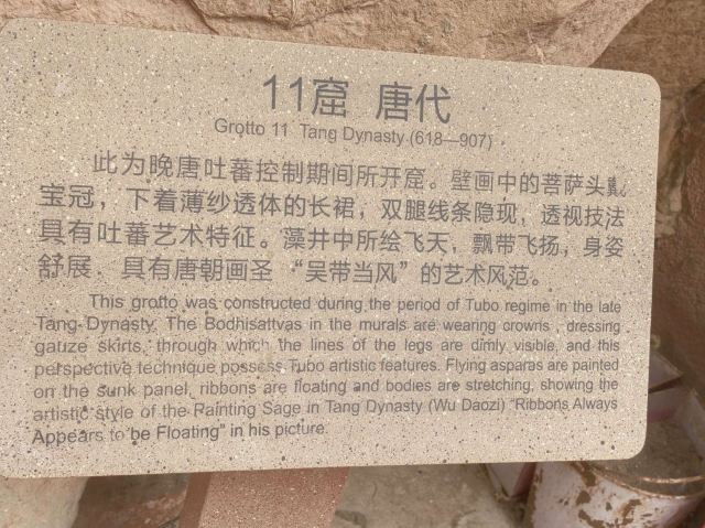 唐代作品艺术成就相当高,当时僧人达到3000多人。该窟中的西秦建弘元年(公元420年)名僧法显的墨书题记,是国内石窟中保留较早的纪年题纪,对全国其他古老石窟的断代提供了标识,具有十分重要的历史价值。