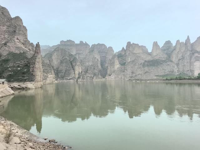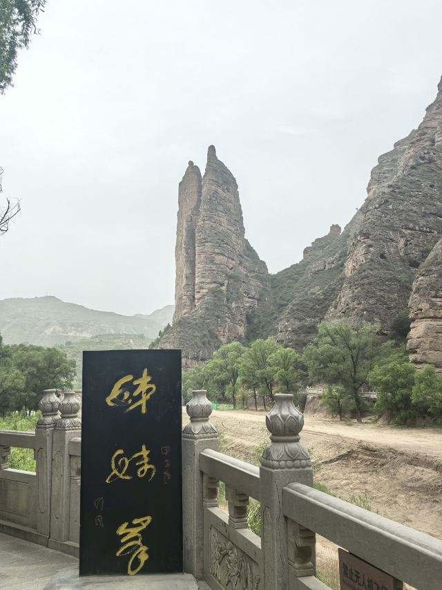 炳灵寺入口处悬崖旁边伫立着峻峭的姊妹峰,周围有鸳鸯洞、药水泉等胜境,山青水秀,峰险石奇。