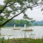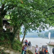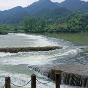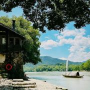 微信小程序古堰画乡旅游度假区位于丽水西南的大港头,这有里丽质天成又磅礴大气的水乡景色,拍照或写生尤其漂亮,因此许多美术院校选择这里作为写生基地,有了“画乡”的美誉。江滨古街边常能看到支着画板创作的人,颇有文艺气息,而已有千年历史的水利工程通济堰,是来到古堰画乡旅游度假区的游客必到的地方。瓯江将景区分为两部分,“古堰”是北岸的堰头村,“画乡”指的是南岸镇政府所在的大港头镇。二者隔河相望,没有桥,只有画舫往返两岸。游人通常会先到大港头,而后乘船去对面的堰头村。两边都有游客中心,门票可以分开买,不过买联票会略便宜一些。大港头看点集中在江边一条挂着红灯笼的街——江滨古街,虽然新修后看不出古意,也算得上风景如画。街道两边大多是画室或者和画有关的店铺,你可以在街边文艺的特色小店淘些特色小玩意儿,也可以在他她爱情邮局寄张明信片给亲人朋友。东面街口有棵古香樟树和以此命名的双荫亭,很有韵味。亭旁是香樟古埠,可在此乘坐去往对面堰头村的渡船,或者沿街走到摄影展览馆附近的通坪埠头乘船。瓯江的江水平静,水很干净,周围的自然风光也很是不错。江上时常有挂着白帆的小船,适合采风拍照。乘上画舫,不久就能到达江对岸的堰头村。需要注意的是,游船下午五点就没有了,要注意游玩时间。从古堰码头至村边的景观道旁有不少塑像,介绍了历代与通济堰有关的政客、水利学家和诗人。走过一段汀步,岔路口往前可沿着江边一路走到通济堰,往右则通往村北的文昌阁。由文昌阁往西走也能到通济堰,不过沿路有许多古樟树、古民居,人文景观更为丰富。其中,文昌阁是座小巧的二层建筑,被大片的古樟树围绕着,一旁是有着三个引水孔的三洞桥。往南是嘉庆年间的“孝节流芳”贞节牌坊,还有“示禁”石碑。通济堰是一段横卧在碧水之间的拱形石坝,它一面是涟漪层起的平静水面,另一面则是汹涌的注水口,和长着灌木,散布着鸥鸟的河滩互相映衬,甚是抢眼。通济堰一旁的詹南二司马庙内,有元代以来二十多个水利碑刻,可以借此了解这个千年间浙江很大的水利工程。大港头可住宿的地方不少,多是古朴风格的客栈和农家乐,标间价格在200元上下,预算充足可住更好些的江景房。另外,当地的鱼非常出名,当然价格也不菲,溪鱼一斤大约45元。