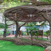 4分 满意银川动物园内有“银湖”,增添了“烈士纪念亭”“朔方亭”、“游船码头”、“玉带桥”、“少年科技站”、“儿童活动场”及动物园等20多处景观及游乐场所。园中浓荫蔽日,亭台错落,每天都吸引着大量游人前来赏玩。