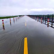 每当水漫公路时,夕阳下汽车驾驶在水面上,旁边是渔家捕鱼的小船,背后是落日的余晖,其美丽的场景宛如一幅绚烂的油画,令人着迷。