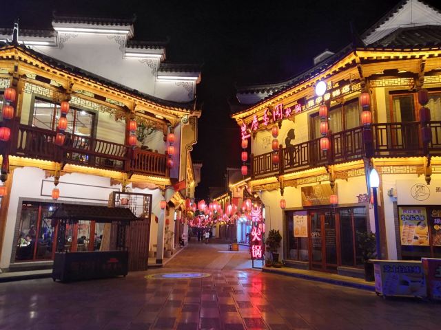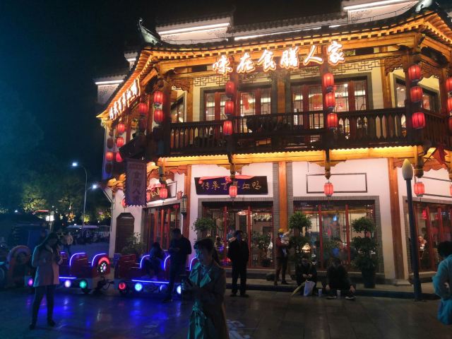 说就说是古城,但是其实这边是一个比较新的商业区,因为真正的零陵古城,其实现在已经不复存在,只有一小节城墙,在这边这个小古镇上面的仿古装修还是弄得蛮不错的,加上餐饮和娱乐,晚上特别热闹。