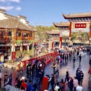 虽然是比较新的商业区,但是里面很注重中华传统,基本上每走几步路就有一个租汉服的地方,所以在路上会看到很多穿着汉服的小姐姐,也是挺有意思的。