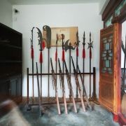 绥远城将军衙署的建筑布局严谨,主体建筑位于中轴线上,由南到北依次为照壁、府门、仪门、大堂、二堂、三堂、厢房和耳房,左右设有其他附属建筑。衙署内设有书房、兵器库等,展示了清代官员的办公和生活场景