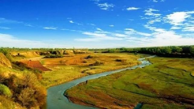 “山无头,水倒流”被人们称为右玉县的两大奇观。水倒流,指的是苍头河的滔滔河水,不像其它河流那样东流或南流,而是向北流,流经内蒙40里入洪河,又转向南入黄河。苍头河独特的流向,使其名声大振而远近知晓。沿着虎山线向北行进,有一片“林草茫茫、流水潺潺”的狭长地带,便是苍头河生态走廊。