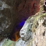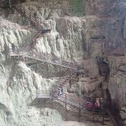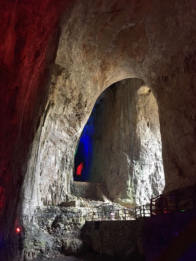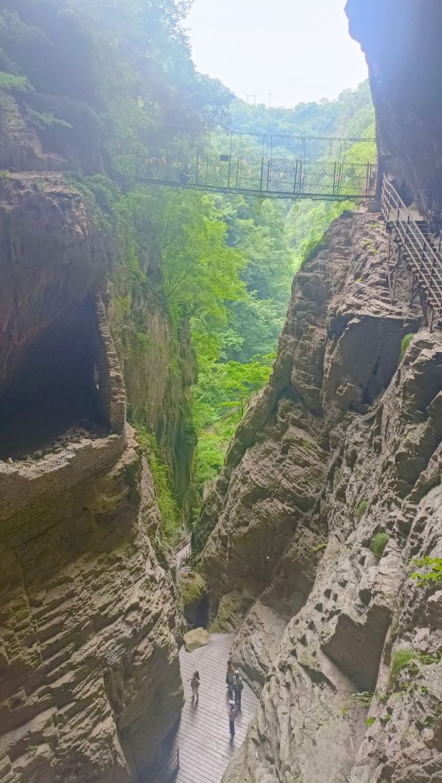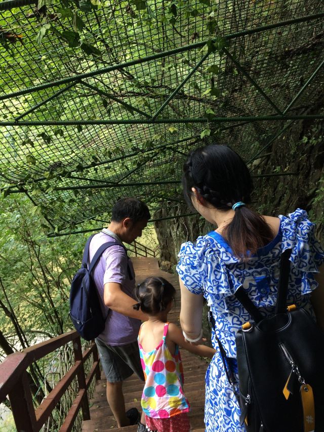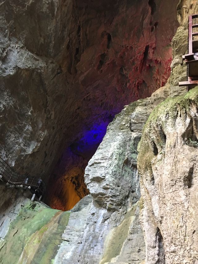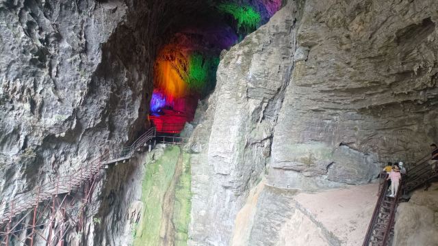 4分 满意游客中心旁进入峡谷,刚开始走在峡谷,路好走,不远就到达溶洞入口,还有早年的历史遗迹,毁损的砖房,溶洞不小,洞内钟汝石虽然不多,但溶洞漂亮,且长,出口在另一头,,回头路是超市后方的古官道,这里开始爬山回游客中心,山路不算短,可惜没有接驳车