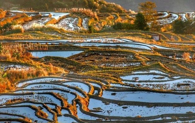 【趣味】从上至下,每块梯田颜色都不一样,各有千秋。
