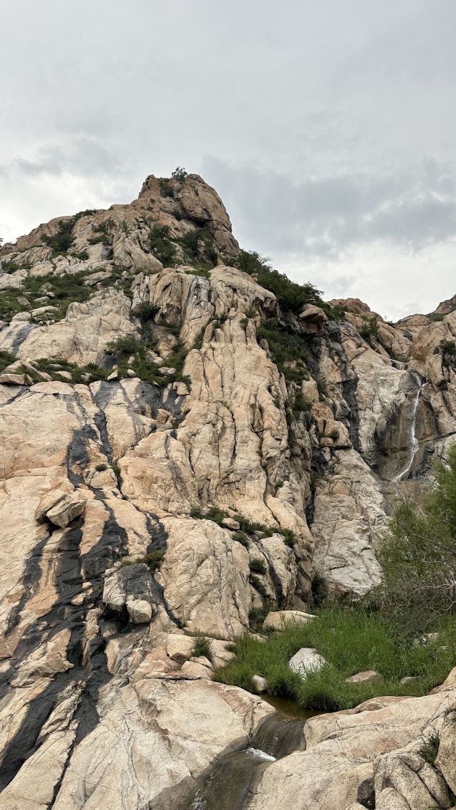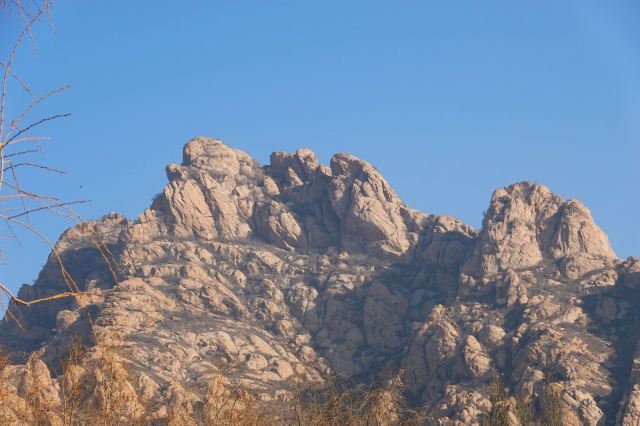 山,安安静静地伫立在那里,重峦叠嶂,峭壁耸峙,山尖似箭,直插云霄。天,像翻过来的海平面,明镜般包裹着奇险的山峰。葫芦泉碧波连连,色如翡翠,映衬着天涯山的不拘一格与特立独行。
