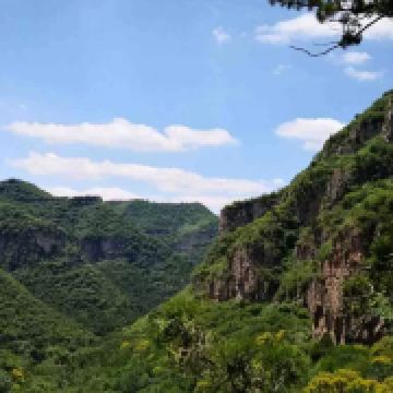 盂县藏山旅游风景名胜区的自然风光也是非常迷人的。山中草木茂盛,抬头可见奇峰怪石,一年四季景色各异。春天山中是花的海洋,几十种山花开遍山野;夏天这里是避暑的胜地,满山都是浓郁的树荫,清凉爽心;如果你是秋天来到景区,这里是山峦是黄色和红色的世界;寒冬藏山也不会令人失望,瑞雪飞扬的冬季,千里冰封,十分的壮观。