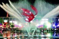 广场中心为旱喷泉和音乐喷泉。中心广场音乐喷泉配以《祖国颂》、《黄河颂》、《盐湖颂》等节奏鲜明、庄重欢快的42部乐曲,喷泉水柱随乐曲节奏起伏跌宕,以主题曲调之高低、强弱、缓急,高可冲天50米,似飞瀑气势磅礴,低仅离地数十厘米,成雾状、成花形、成玉珠,如天女散花。