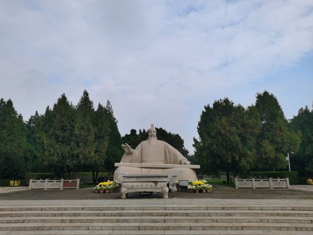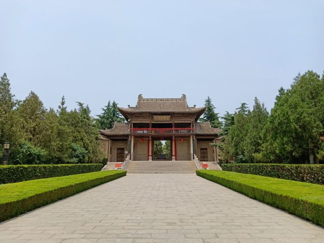 5分 超棒舜帝陵庙,位于鸣条岗西端,北枕孤峰,南对条山,东拱香山瑶台,西瞰黄河巨流,尽得形胜地利矣,陵冢修于禹时,庙始于唐开元间,分为外城、陵园、皇城三区,进外城,过神道,入园门,穿享厅,即为陵冢,陵后为皇城、戏楼、献殿、正殿、寝宫、钟鼓二楼,一应俱焉,神道左右古柏苍苍,生死相拥,南北相斜,堪称奇迹。舜帝塑像高居殿中,有香火飨之,行至此处,顿感古意苍穆,肃然起敬。中国之源始于尧舜禹时,迄今几五千年矣,舜帝承尧启禹,其功巍巍乎,子曰:‘舜其大智也歟’,耕历山,渔雷泽,陶河滨,就时于负夏,诸事大成。于是尧乃试舜五典、百官,皆治,及至代尧摄政,齐七政,礼六宗,揖五瑞,明刑法,同律度量衡,五岁一巡狩,遍告以言,明试以功,肇有十二州,子曰:‘无为而者,其舜也欤’。所谓‘’有虞帝舜之有天下也,泽被万世‘’。司马迁称赞说‘天下明德皆自虞帝始’。所以,历朝历代都将河东作为舜帝的国祭之地。舜帝陵前上方为明代石碑‘有虞帝舜陵’,下方元代石碑‘舜帝陵’,陵冢外砌方形砖花墙,周长50米,冢上古柏已有两千余年的历史,树状奇特,五个主枝形似虬龙,亦称‘五子登科柏’。帝陵东侧配关公祠,乃后人为纪念关公生前经常到此拜谒舜陵所建,正殿西侧有重修关帝圣君庙记石碑两座,1900余年国槐一棵,千百年来每年农历二月二、九月十三,这里都要举行盛大的关公拜舜帝活动。帝陵西侧配敤首祠,中国绘画始祖敤首,舜帝妹妹,我国著名美术史学家郑午昌在《中国画学全史》中写道‘历唐(尧)而虞(舜)……时人始有画名,则舜妹敤首也。……宜之造化在心,别具神技……或谓中国画祖,实为敤首者’,当代中国工笔重彩画大师潘洁兹先生亦同此论,遂倡议创建敤首祠,并配有《敤首故事》壁画长廊,真真锦上添花之作,增光添彩之举。