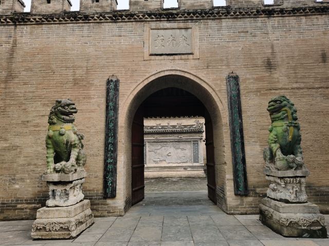 元代献殿、清代享厅排于前,关公祠、敤首祠列于左右,整个陵区威严、肃穆,王陵气势尽显。陵后为皇城,又名“离乐城”。皇城城墙高大雄伟,城内以戏楼、卷棚、献殿、正殿、寝宫为中轴,东西廊房、钟楼二楼左右对称,正殿为重檐歇山顶,殿内舜帝塑像正襟南面,身着衮服,头戴冕旒,神态庄严,皋、夔、稷、契四位大臣在两旁恭敬而立。