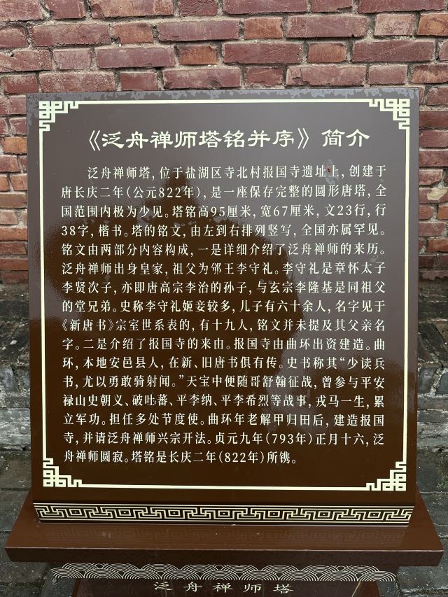 泛舟为唐代报国寺禅师,圆寂后筑塔祀之,始建于公元822年。