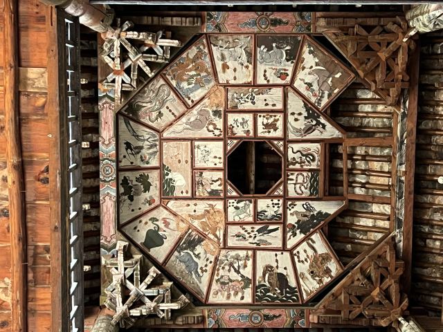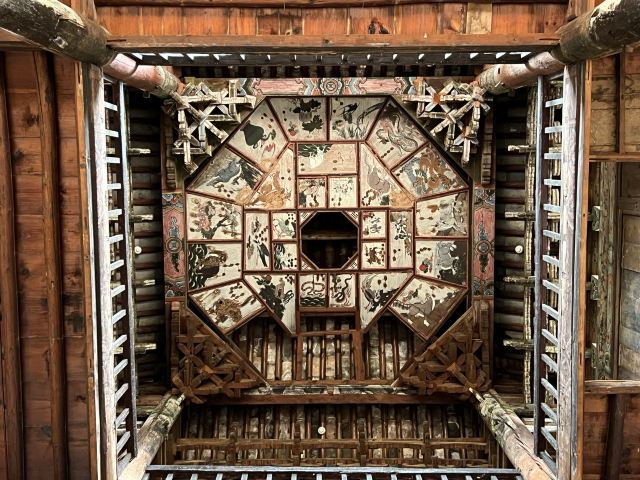 诺邓的玉皇阁始建于明嘉靖年间,古代是道教宫观。大院内有明代的梅树及翠柏、紫薇、金桂等。大殿顶层上现存的藻井绘画“二十八星宿图”可称为“诺邓一绝”。