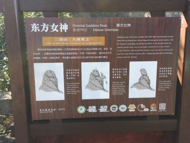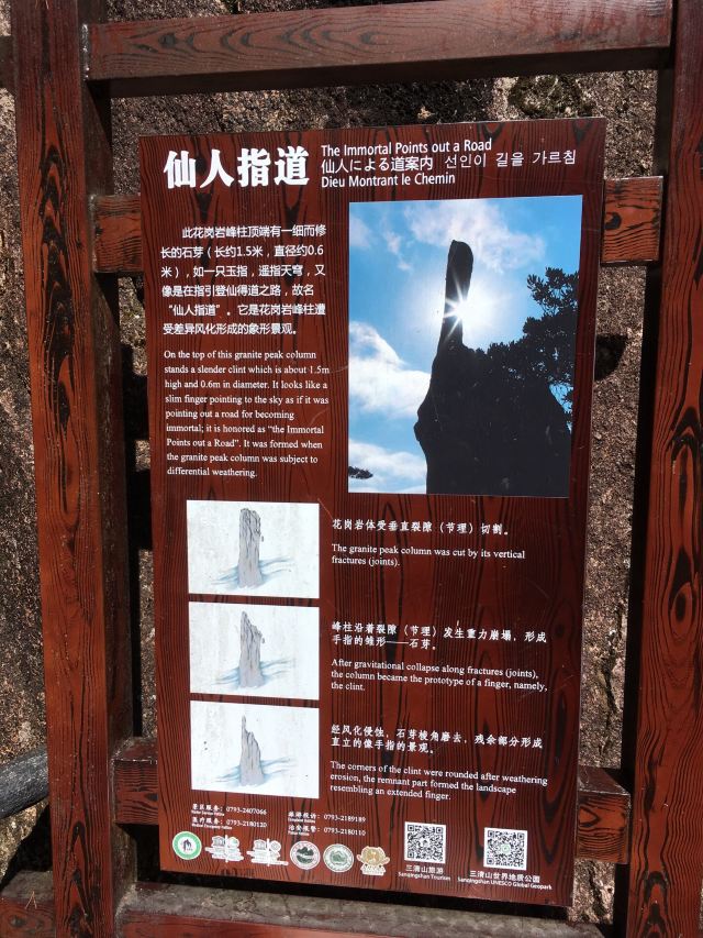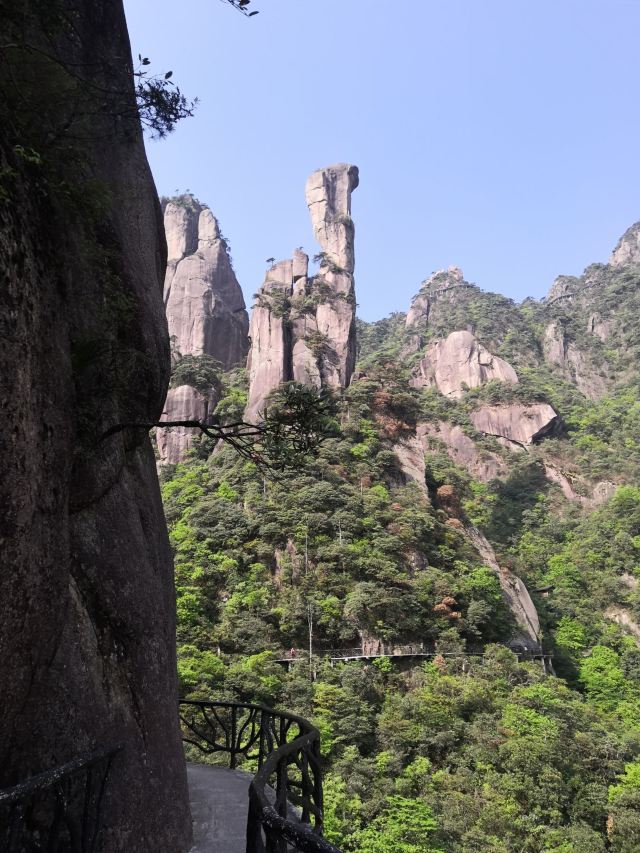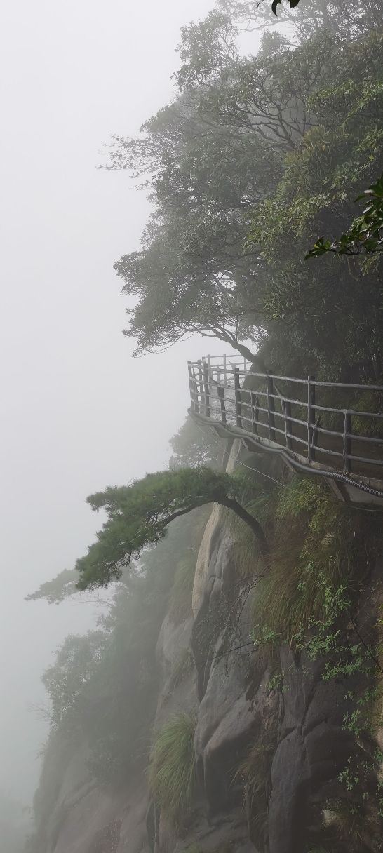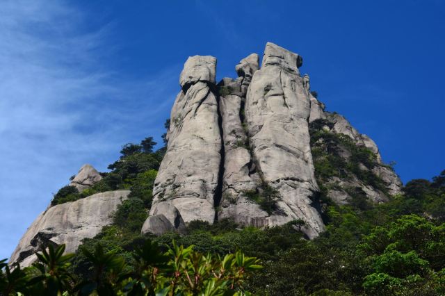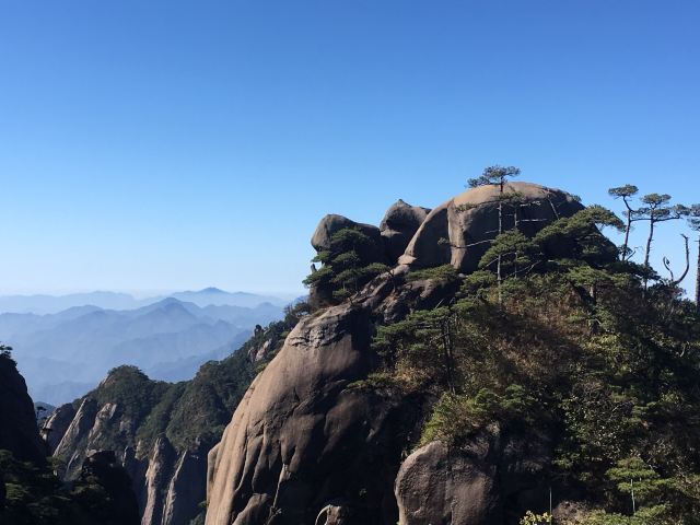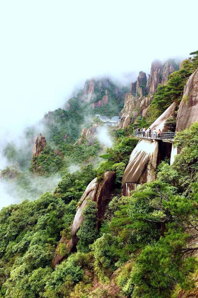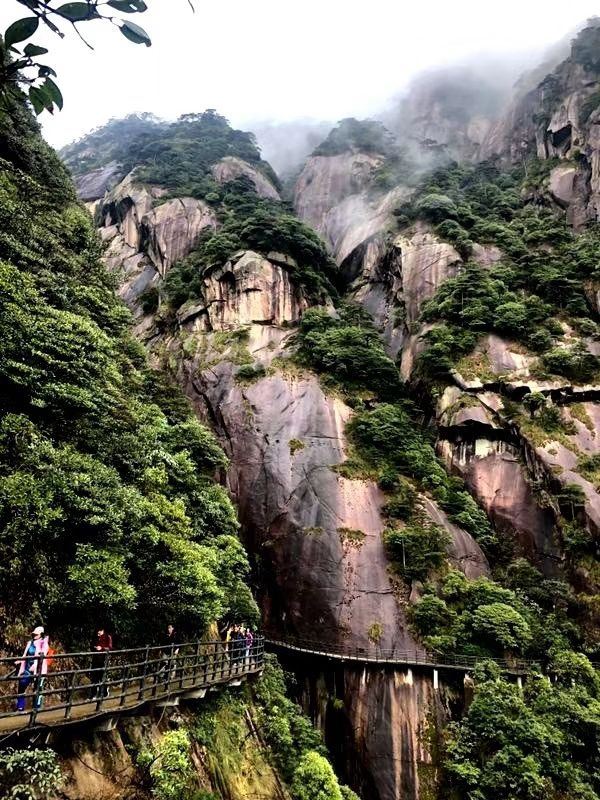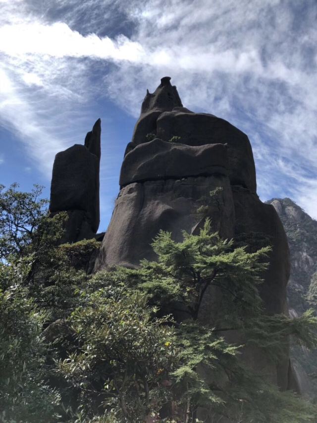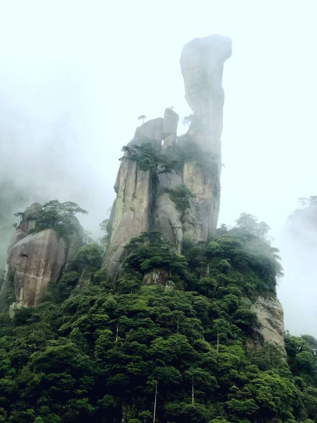 5分 超棒俗话说得好“否极泰来”,从早晨开始登山的阴雨绵绵沮丧至极,到上午游览时雨霁云升心情渐好,至中午时分云海涌动美景如画兴奋不已,恰似二十多年前游黄山的经历,上山雨,游山雾,下山晴,一日遍览山川的雄伟与妖娆。三清山丰富的花岗岩造型石与多种植被、远近变化的景观及震撼人心的气候奇观相结合,创造了世界上独一无二的景观美学效果,呈现了引人入胜的自然美。心情好,感觉不到累,下了一线天,经过摩崖石刻,一路上松涛合泉声、万木葱笼、百景争艳、石径穿行于林荫中,不知不觉中就到了日上平台的分叉口。小憩后,研究再三,为保证体力和时间,只好放弃三清福地景区(来回至少3个小时)向最终的目的地--皇顶禹出发。简单的介绍一下,南清园景区是三清山自然景观的精华,这次选择的路线自巨蟒出山、东方女神、杜鹃谷、一线天至游仙谷到禹皇顶最后下山返回巨蟒出山,构成一个环线,5-6个小时就可以走完,再加上上下山所花时间,一天时间是足够的!