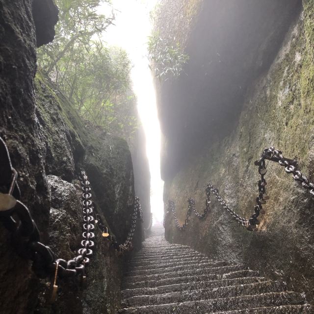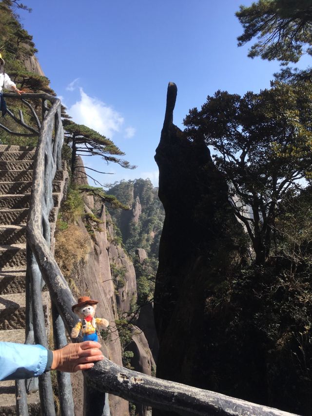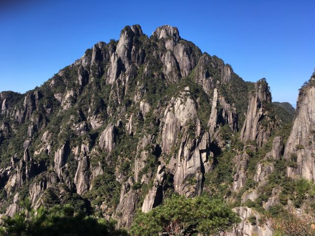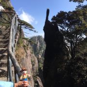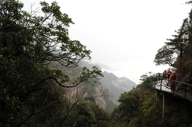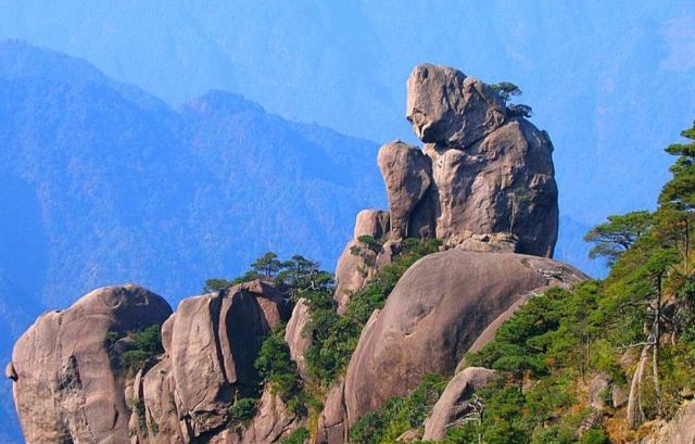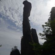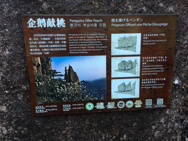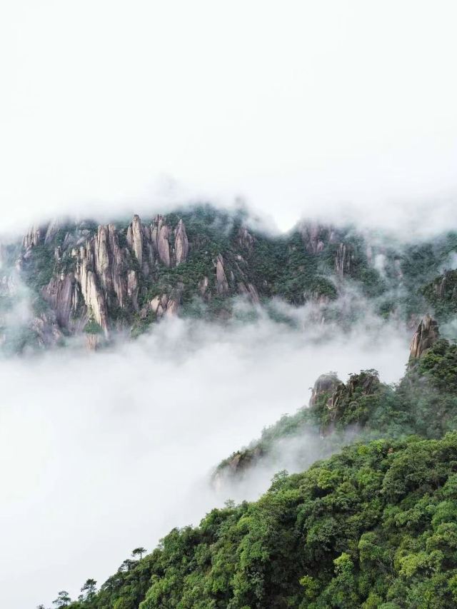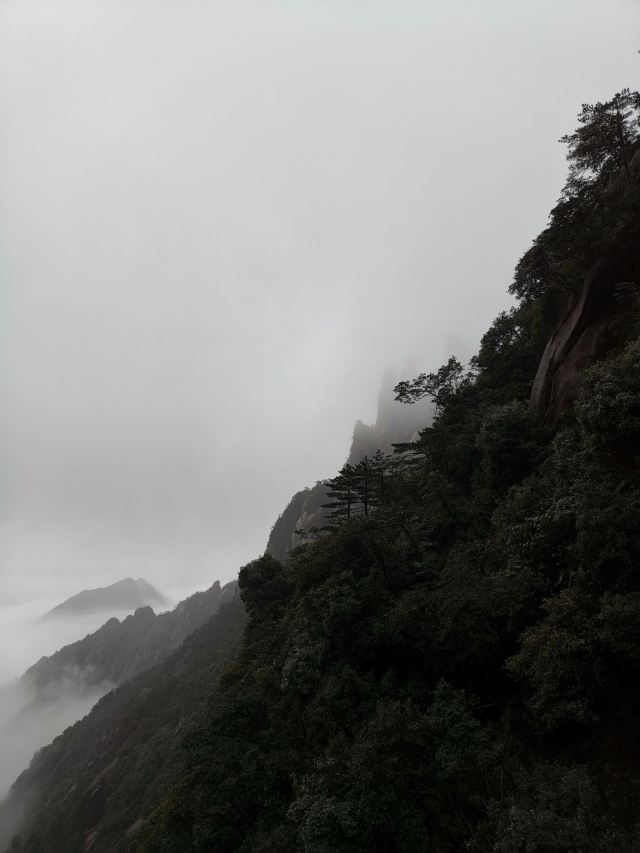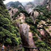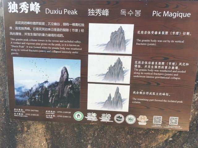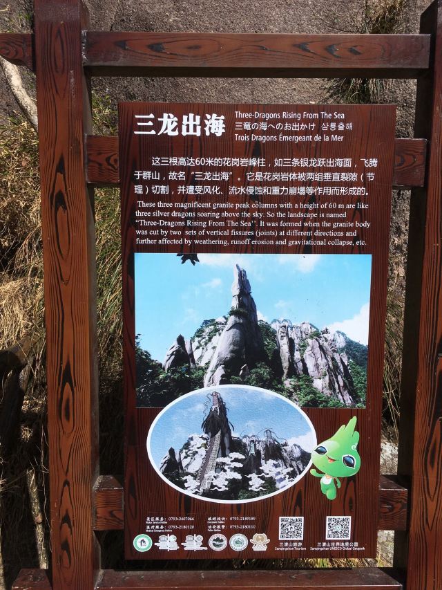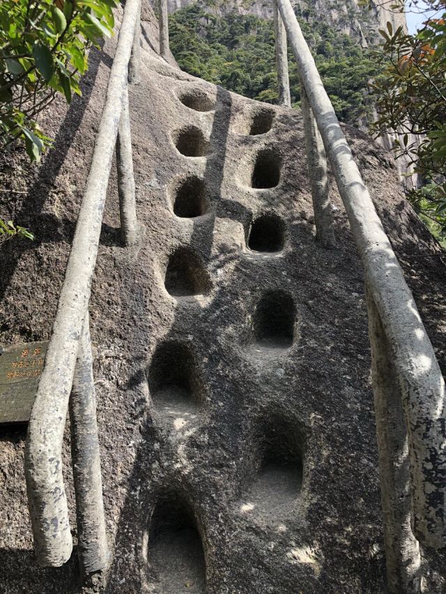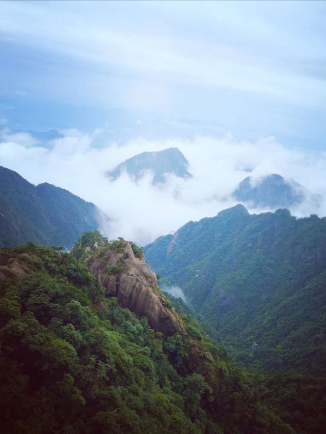 5分 超棒俗话说得好“否极泰来”,从早晨开始登山的阴雨绵绵沮丧至极,到上午游览时雨霁云升心情渐好,至中午时分云海涌动美景如画兴奋不已,恰似二十多年前游黄山的经历,上山雨,游山雾,下山晴,一日遍览山川的雄伟与妖娆。三清山丰富的花岗岩造型石与多种植被、远近变化的景观及震撼人心的气候奇观相结合,创造了世界上独一无二的景观美学效果,呈现了引人入胜的自然美。心情好,感觉不到累,下了一线天,经过摩崖石刻,一路上松涛合泉声、万木葱笼、百景争艳、石径穿行于林荫中,不知不觉中就到了日上平台的分叉口。小憩后,研究再三,为保证体力和时间,只好放弃三清福地景区(来回至少3个小时)向最终的目的地--皇顶禹出发。简单的介绍一下,南清园景区是三清山自然景观的精华,这次选择的路线自巨蟒出山、东方女神、杜鹃谷、一线天至游仙谷到禹皇顶最后下山返回巨蟒出山,构成一个环线,5-6个小时就可以走完,再加上上下山所花时间,一天时间是足够的!