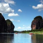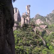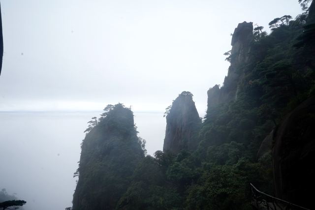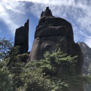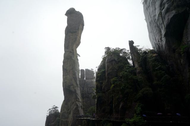 南清园景区位于三清山风景区中心位置,是三清山景区为主要的部分,三清山景区内几大精华景点均在此处。南清园景区平均海拔1577米,历经十几亿年的地质演化形成了特殊的花岗岩峰林地貌,有众多形状极为特别的山峰怪石,禹皇顶、巨蟒出山、东方女神、司春女神、杜鹃谷、一线天等都十分值得一看。同时又有珍奇花木遍布其中,而且时常可在山峰上看到流光云海,景观类型非常丰富。南清园内有换线的步道,一路顺时针游览,分别经过各个奇特的山峰和峡谷,其中一线天的299级台阶需要小心谨慎,但此处也能体会到南清园山川的险要,路上又有多种植被林地可供观赏,游览一圈大约需要两到三小时,一般选择午饭后前往景区游览。