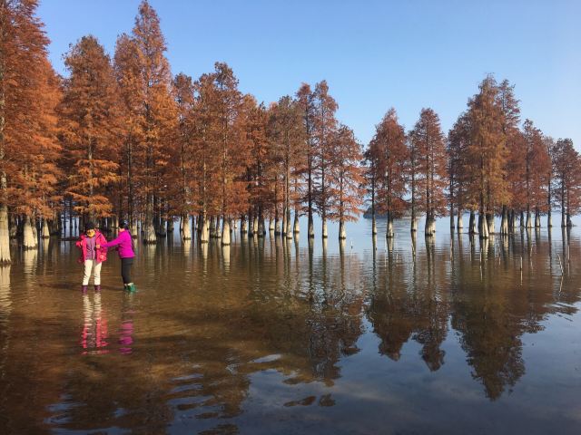 5分 超棒中秋节假期去的,很美的湖。我们住在镇上,自驾开到村口附近,步行走进去的。没有门票。湖是一级水源保护区。很干净很宁静的感觉。有人在里面露营。拍照胜地。杉树长在水里,很美!