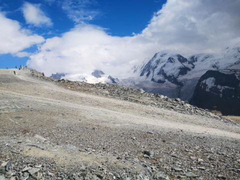近距离看雪山,还是要坐齿轮小火车去Gornergrat。一般就是先从Zermatt GBB出发,然后到达海拔最高的Gornergrat,这里看马特洪峰的概率更大,然后再往下坐一站,去Rotenboden看倒影,这对天气要求高点,有时候晴天还要等下。看完倒影可以选择原路返回,也用继续一站站玩下去。