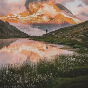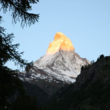 灿烂的斜阳,纷纷扬扬地射在马特宏峰高耸险峻的山体上,金光晖映,摄人心魄…那,是金山。