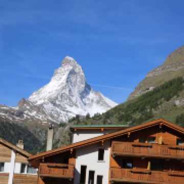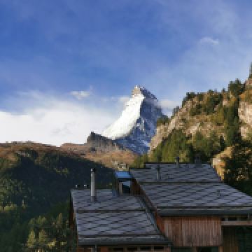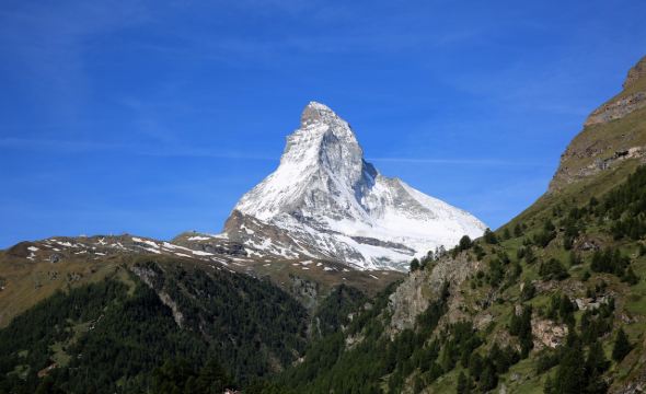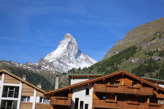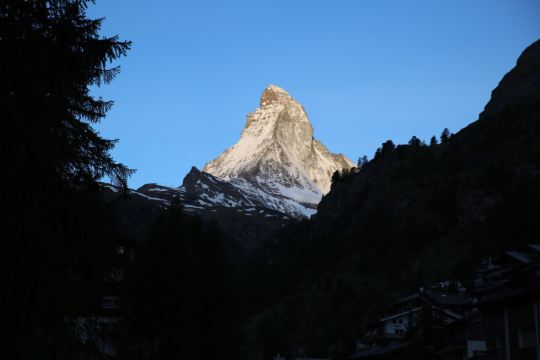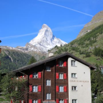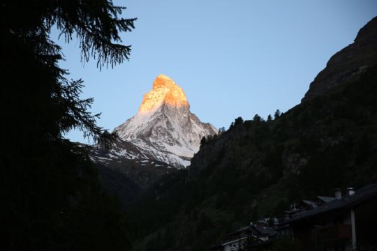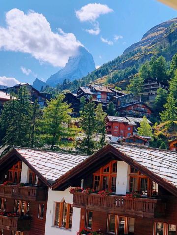马特宏峰北坡山坳中的美丽小镇-海拔1620米的采尔马特,是远眺马特宏峰的最佳地点。清澈的小河、尖顶的教堂、典雅的木屋、硕大的长号,与背景板式的马特宏峰相映成趣、张张大片。