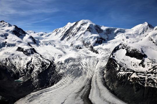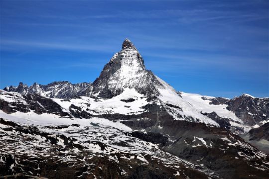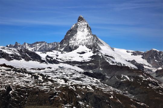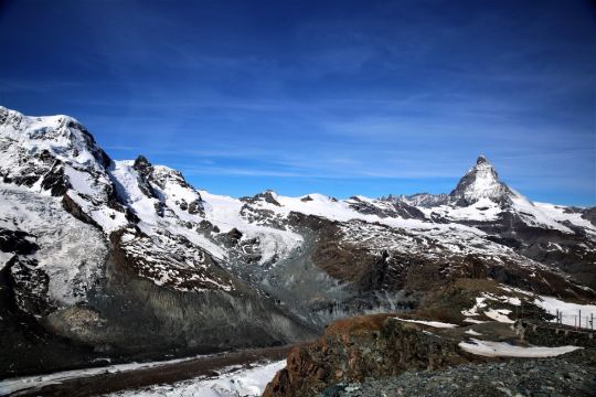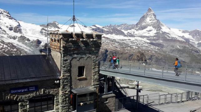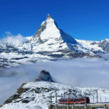 海拔3092米的戈尔内格拉特观景台,是近观马特宏峰的绝佳处。360度环视,阿尔卑斯山脉的38座山峰历历在目;海拔4478米的马特宏峰一柱擎天、直指天际。