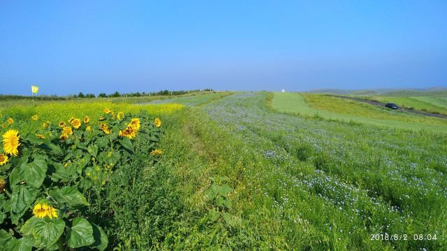 东线一百公里前半段路程比较平缓,景色以草原和为主。后半段到桦皮岭就比较刺激了,都是大陡坡,连续急转弯,景色主要是林区和梯田。梯田真美一层一个颜色,天空好蓝呀,感觉好干净。很不错,就是开车有点累,毕竟走完天路几个小时,还要返程,司机是有点吃不消,别人都还好。建议下次去的时候尽量一个车上有两个轮流着来会好很多。