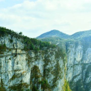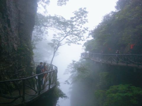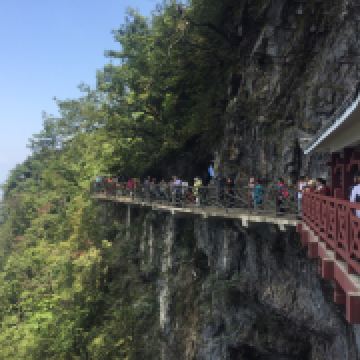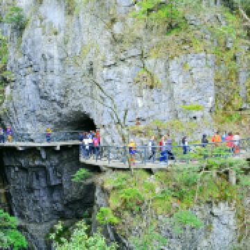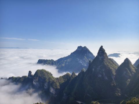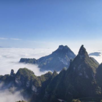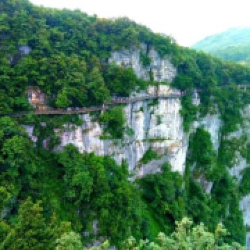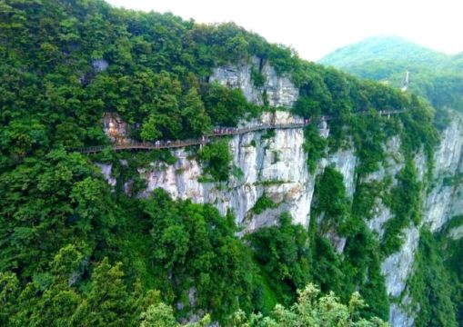 天门山国家森林公园-鬼谷栈道位于天门山国家森林公园内,因悬于天门山国家森林公园-鬼谷洞上侧的峭壁沿线而得名。栈道起倚虹关,止于小天门,全长1600米,平均海拔1400米。在这里,可以观赏雾气缭绕的人间仙境。