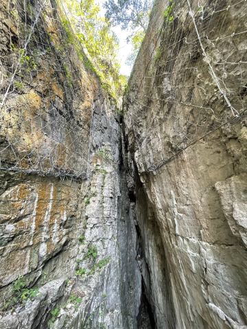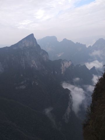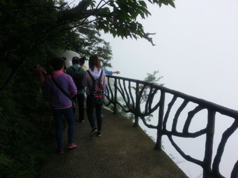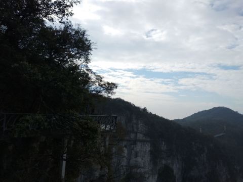同样的葱郁树林,同样的极目远眺,而这里探的是鬼谷仙境的若隐若现。与西线玻璃栈道是同一个方向,上山顶后只要沿着悬崖边缘走就可以到,指示牌还是很清晰的。个人觉得风景和森林公园比起逊色多了,这里玩的就是刺激。刺激点在玻璃栈道那一段,玻璃栈道有60米长,和华山的长空栈道有得一拼,但个人觉得比长空栈道走起安全多了,至少不需要保险绳,而且挑战的完全是个人内心的恐惧。