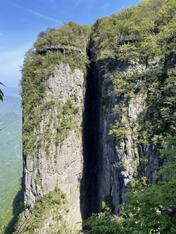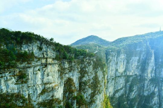5分 超棒登天门山其实不需要爬山,行程完全不累,一般半天时间就很适合了。乘索道上山后在山上主要是沿着栈道一直走,俯瞰远山和整个张家界市区。鬼谷栈道位于天门山山顶西线觅仙奇境景区,是我们最先去到的,最大看点就是延绵的栈道,往下就是深渊,登高望远的视野非常好。在悬崖上赏风景,真正是“无限风光在险峰”。