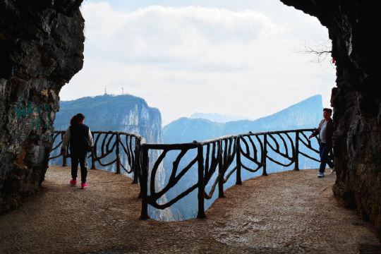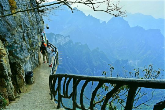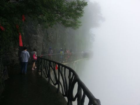 栈道包含在张家界大门票内,半个小时能走完,栈道上可以拍到不少风景大片,上玻璃栈道还需要脱鞋换上鞋套,以保证玻璃的清晰度。冬季由于天门山上积雪很多时间会关闭天门洞和玻璃栈道保证安全,这时也不是游览张家界的好时节。