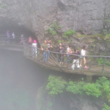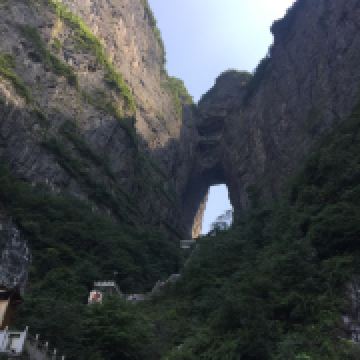 5分 超棒天门山鬼谷栈道位于张家界天门山国家森林公园,因悬于鬼谷洞上侧的峭壁沿线而得名。栈道全长1600米,平均海拔为1400米,起点是倚虹关,终点到小天门。与其他栈道不同的是,鬼谷栈道全线既不在悬崖之巅,也不在悬崖之侧,而是全线都立于万丈悬崖的中间,给人以与悬崖共起伏同屈伸的感觉。站在栈道上俯瞰群山,古人“会当凌绝顶,一览众山小”的感觉油然而生。由于天门山是国家森林公园,植被特别丰富,加上典型的喀斯特地貌,所以,在这条栈道上更能找到一种在乘坐直升飞机飞越热带雨林大峡谷的感觉,这平时只能在电影里看到的场景,在这里能让你身临其境。由于海拔和气流的影响,很多小鸟都不能到达与栈道平行位置。所以,站在这里,脚下是没有边际的绿野,成群的小鸟在峡谷中嬉戏,偶尔有老鹰从眼前掠过,闭上眼,挺着发麻的双腿,带着急促的心跳,伸开双臂,你就能得到一次最完美、最刺激、最贴近自然的SPA。因为,要知道这种在悬崖上赏风景一般都是非人类所能享受的。如果是雨前雨后,在栈道上则是身边雾气盘绕,脚下云海翻腾,令人抬腿似生雾,迈步如踏云,人间天界,世外洞天也就是如此了。如果您还觉得不够刺激的话,在栈道的完结处的两个悬崖之间有一条长160米的悬索吊桥,同时,在海拔最高点还有一个挑战心里极限的玻璃栈道,在这里,你会觉得你在这悬崖峭壁上空走过,如果你能轻松自由地走在这,那么,您就是一个真正的勇士了。最后,我们还可以乘坐纯座椅无挡板的小索道从栈道中点回到索道上站,体验双脚腾空从悬崖之间“飘过”的刺激体验。