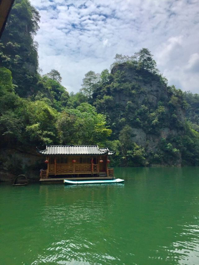 除了秀色可餐的自然美景,纯正地道的土家山歌,如天籁一般在湖间若隐若现,神秘又浪漫,成为宝峰湖景区又一道亮丽的风景。游船划向湖心,靠近阿妹的小船时,游客用热烈的掌声便可邀请出羞涩玲珑的土家妹子,甜美的歌声入耳,缠绵悱恻的情歌对唱拉开序幕,游客们也兴致高涨地与阿妹的对唱山歌,以歌传情,以歌定情。这可到了单身男士大显身手的机会,因为只要对上三首山歌就有机会抱得美人归。