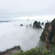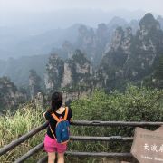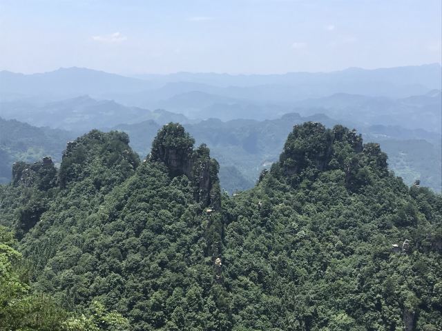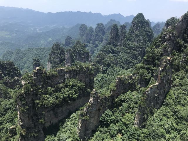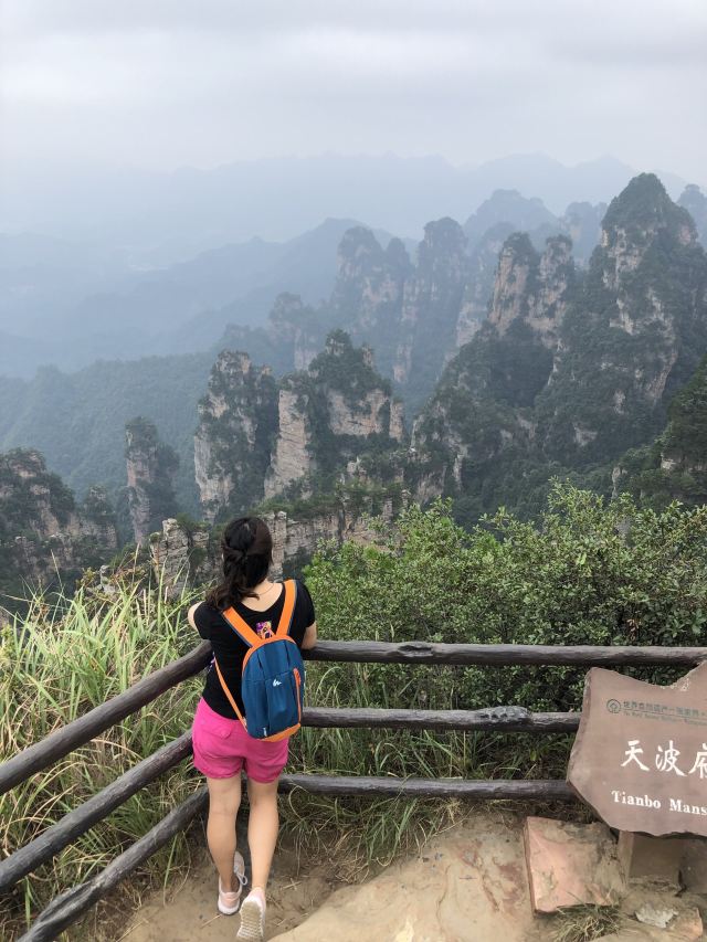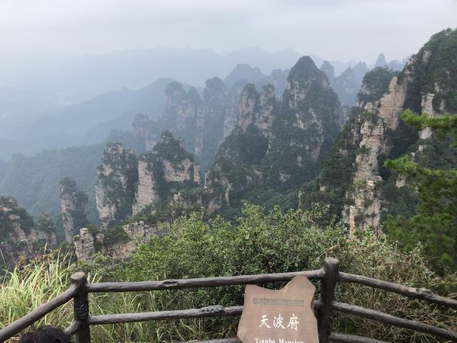 5分 超棒在张家界国家森林公园第一天,最后安排了杨家界景区,从袁家界直接坐环保车可到,杨家界最远的景点就在天波府,也是让我们觉得最惊艳的一个景点,所谓无限风光在险峰就是这个道理。这里台阶很多,光乌龙寨单程大概有一千级,杨家界是整个森林公园最累的地方,却是最好玩的地方,跟团是不会走到这来的,因为这里没有自费景点,也是个费体力的地方。经过乌龙寨后,走过索桥,还要攀爬一段接近90度的铁质人工扶梯,非常惊险,但是这里游人不多,所以不用担心,然后就上了天波府观景台,其实就是一个有块“天波府”标识牌的观景台,放眼望去,平台周围环绕数十座悬崖绝壁,交缠错落,参差不齐,看起若残垣断垒一般,这等悲壮的场面如同杨家将“天波府”的遗址。如果说在森林公园其他地方看到的是峰林,这里则是难得一见的峰墙,强烈推荐一定得去的地方。