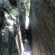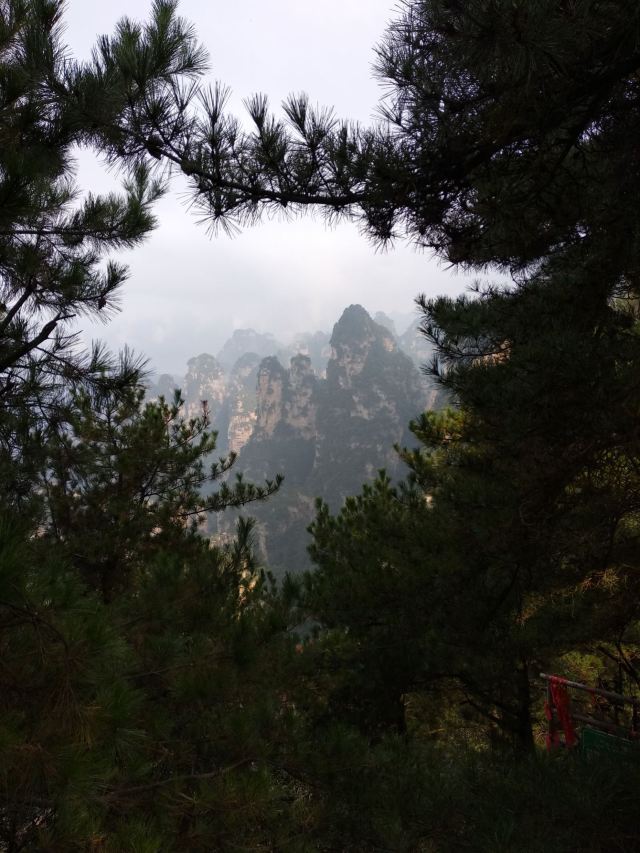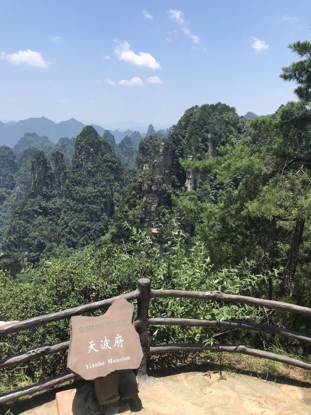 天波府距离乌龙寨较近,没去之前看攻略提到这个景点,心想天波府不是该在开封吗,怎么会在主打自然风光的张家界呢。实际这是山顶上一个观景台,上面有块标识牌写明天波府,如果不注明估计谁也看不出来,由于平台周围环绕数十座悬崖绝壁,交缠错落,参差不齐,看起若残垣断垒一般,场面悲壮,导游说当地人认为这是当年杨家将“天波府”的遗址故而得名,纯粹的牵强附会。不过这个观景台非常适合拍照,是张家界最佳拍摄地点之一,由于平台面积很小,假日去的一定要早点去或者避开高峰期,否则容纳有限啊。就这个观景台我们在此都逗留了半小时,看着这奇特的峰林形成的石墙,不由感叹大自然的鬼斧神工。