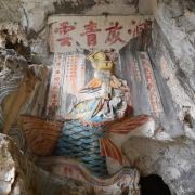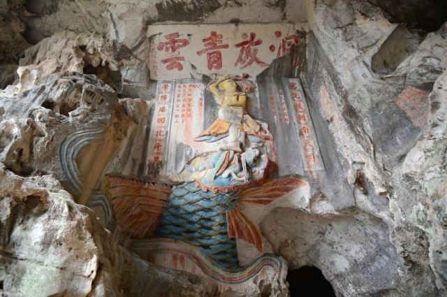 玉皇洞石窟上层为玉皇洞,人间层有玉金洞、毫笔洞、墨池洞、虎龙洞、雄狮洞、孔圣洞,地府为因果洞,八洞组成一个完整的混沌世界。洞内雕凿了一些历史人物的神像以及大量诗词匾对,石雕精湛独特,雕像神韵生动,书法遒劲大气。其中玉皇洞又名雷电洞,有天堂之称,洞内一个高4米、宽5米的玉皇大帝像,头戴金冠、身穿龙袍、手执乾坤袋,居中端坐,两边伴着手捧丹瓶的金童和执琴柄的玉女,造像精美,令人称奇。玉皇洞内8个石窟,反映的内容十分丰富,且各具特色,虽杂而不乱,气势恢宏。