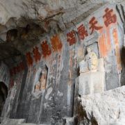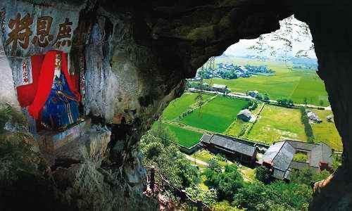 玉皇洞由当地乡绅李京捐资修建,距今已有200多年历史,从1799年开建,历时八年建成,凭借天然溶洞开凿了三层8个洞府,在距此3公里处另凿一峰泉洞,共有9洞,有“九洞乐”的别名。洞内现存石像19尊,全部造型精巧、神态逼真。