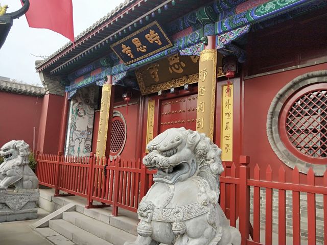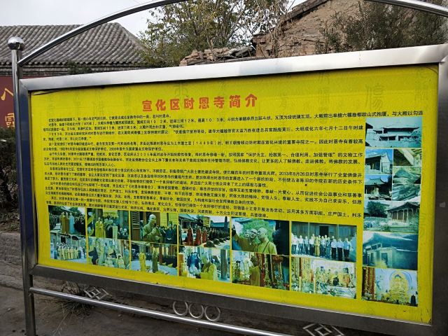 时恩寺位于张家口,始建于明成化六年,目前,寺院其它建筑已毁,仅存大殿,建筑面积约三百多平方米。大殿面阔五间,进深三间,单檐庑殿布戊顶,殿前还有卷棚抱厦五间。