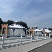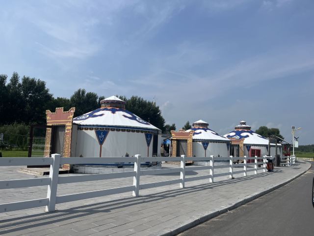 老米头烤羊庄位于德力格尔景区进口处,共有五个蒙古包,同时容纳百人就餐,在这里您可以享受到正宗的草原牛羊菜品,喝着醇香的奶茶。碳火烤全羊,烤出的全羊外焦里嫩,皮脆肉滑,色泽金黄,鲜香异常,吃起来肥而不腻,稣脆香美,与平时吃到的本地羊肉有很大的不同。入夜的草原篝火熊熊,人们随着悠扬的草原歌曲飘然起舞,如入仙境。