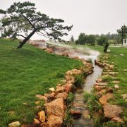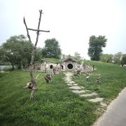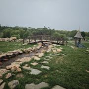回望沙原文化主题广场是根据我国著名儿童文学作家常星儿所著的儿童文学作品《回望沙原》设计而成。《回望沙原》场景雕塑再现了生活在沙原的少年,渴望绿色,对未来的美好憧憬。荒凉的沙原就是人们所说的“八百里瀚海”。“披星露而缅岁月,携舒锦以游沙原,回望一片净土,拨开层层风沙,在原野上演绎少年的风雨传说”。该作品被收录在《百年百部中国儿童文学经典书系》、曾获全国优秀儿童文学奖、宋庆龄儿童文学奖、冰心儿童文学奖、辽宁优秀儿童文学奖等奖项。在这里可以欣赏金色屋脊、白鹭别墅、黑泥小屋、热气球、模拟教堂等童话景观,让您走进童话世界、感受童话魅力,草坪绿茵休闲广场集休闲、娱乐为一体的活动区域,草坪碧绿,湖水湛蓝,绿荫成片,沙滩柔和,让您更贴近自然、拥抱自然。为年轻人打造浪漫的婚纱摄影、户外婚礼现场。