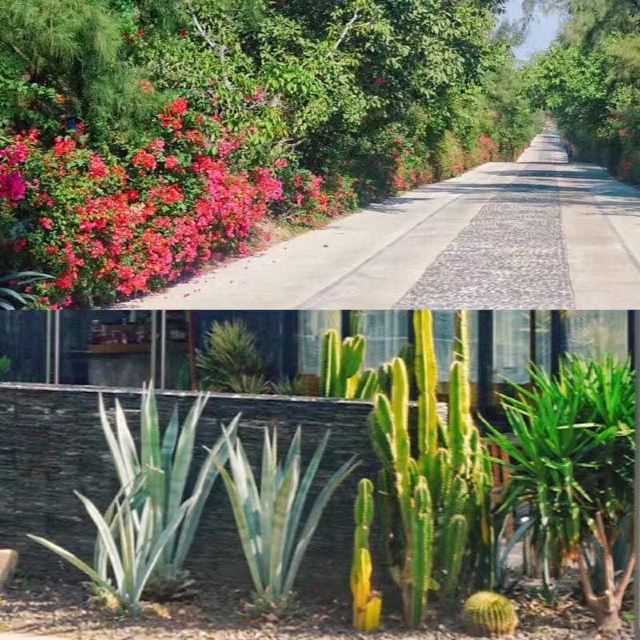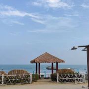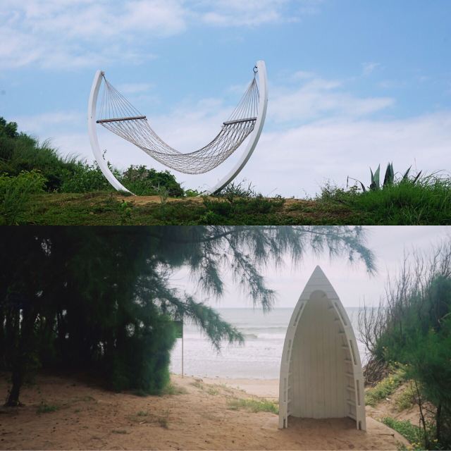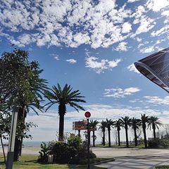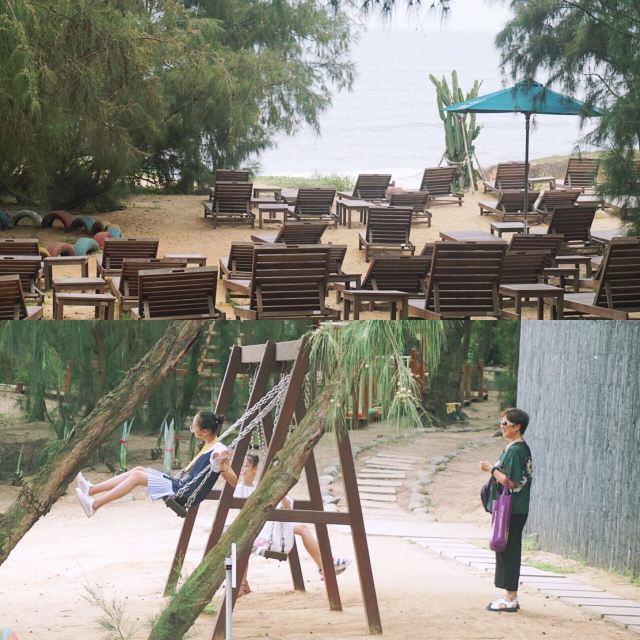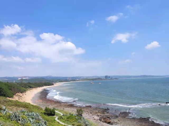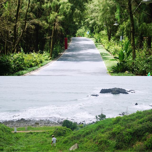 【景色】海景确实无敌,沙滩干净,远远可以望到镇海角。园区柏树林成阴,林间小路趣味规整,不远就安排一处供游客休息的沙滩椅,凉亭。