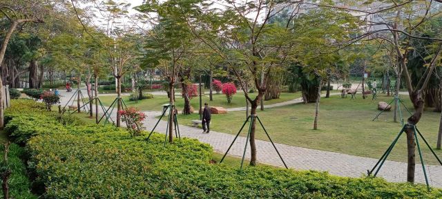 4分 满意地处霞山中心地区,免费开放。这里早晨是老年人健身的好地方,也是年轻人花前月下常来的,中心湖可以泛舟,石拱桥倒影在湖面相映成趣,花花草草和高大的棕榈树
