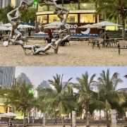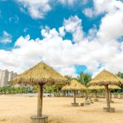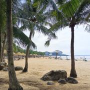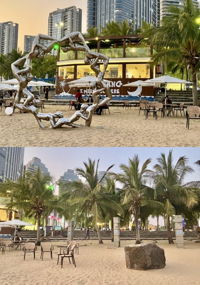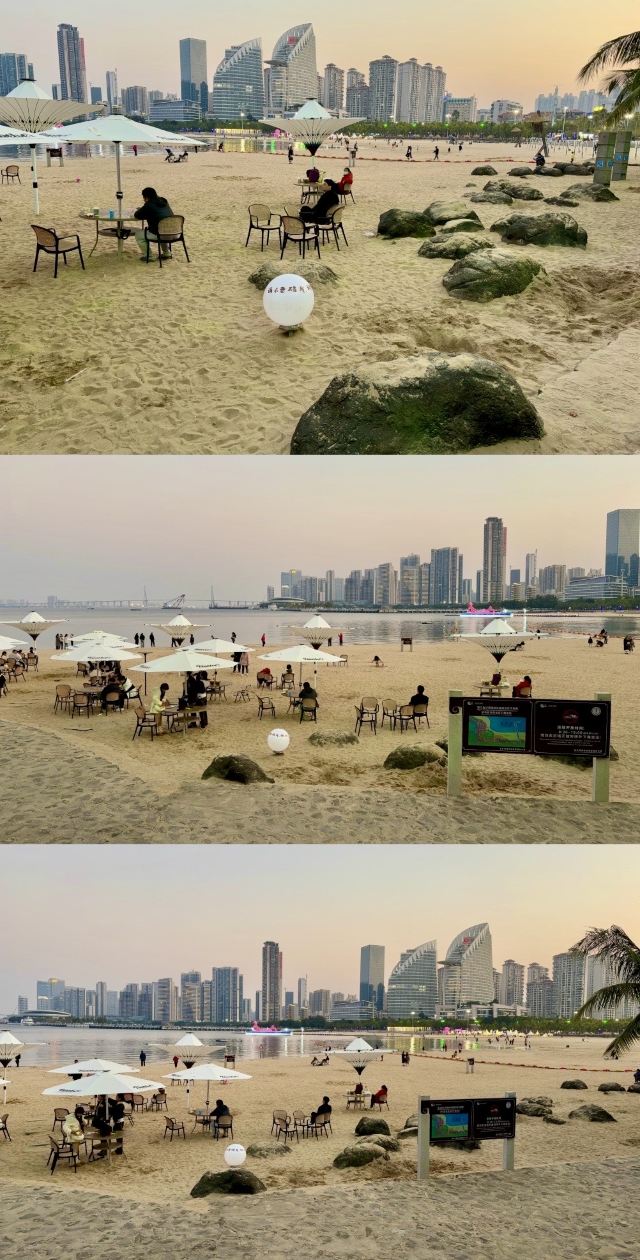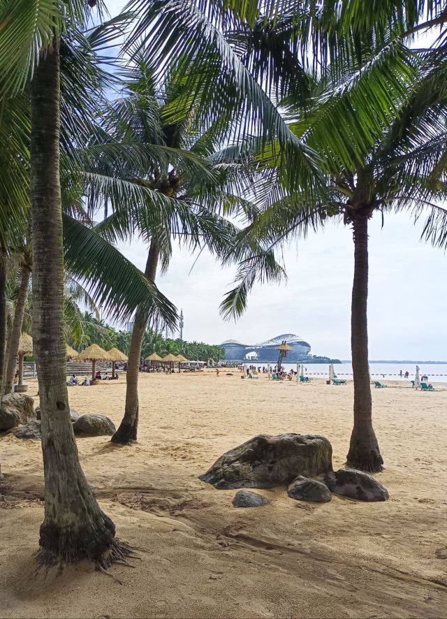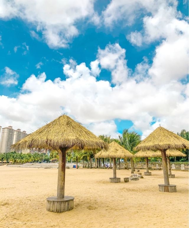 环境也特别干净;每天都有工作人员在打扫。沙滩椅子免费使用;(去其他地方旅游时候才发现,沙滩椅原来是不免费使用的!!)-排排整齐的沙滩椅,还有一些雨伞在顶部,可以乘凉。生里