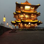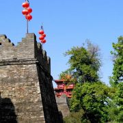 原城墙四角各有角楼,后来皆被毁,如今较为宏伟的就是重建的披云楼。沿着宋城路往西走,在十字路口左转到清风坛,城墙内有一座“宋代古城墙”石碑,从旁边铁门进入就可上到城楼近看披云楼。