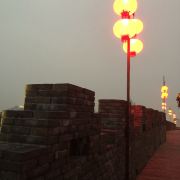 一般从北门“朝天”上去城楼,城楼上即见居民和住宅。房子就直接建在古城墙上,城墙就犹如居民家的围墙,有时候,还可以见到居民在遛狗。想想看,昔日官兵驻防,御敌门外的城墙上,现在这么一幅市井的画面,实在是有很意思的场景。
