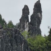 4分 满意景区管理不怎么样,国庆节去的,买票工作人员听到我门一家4口人免门票又不坐观光车,气得不耐烦的让我们去验票处直接亮证就行了。进到验票大门里面后,没有明显的路线指示,很小的地图指示牌也因为风吹日晒毁色了,哪里像个4A景区的样子。里面有三个大景点,一个是观景台、一个石堡竹林、一个布依广场。景区没有指示游客怎么行走最方便,我们看到要天下雨了,担心云雾挡住双乳峰,于是直接去了山上的观景台,观景台上有一个破烂的凉亭,脏的哦,满地垃圾。照完相,然后去了石堡竹林,老人说这里的石林比云南的还要好,游玩石林出来一路往大门口走,根本就不远,幸好没有买30的观光车票。我推荐大家去的话不要买观光车票,距离太近不值得,可以先去石堡竹林,然后在出口就可以上观景台,下山后再去布依广场,然后出景区。